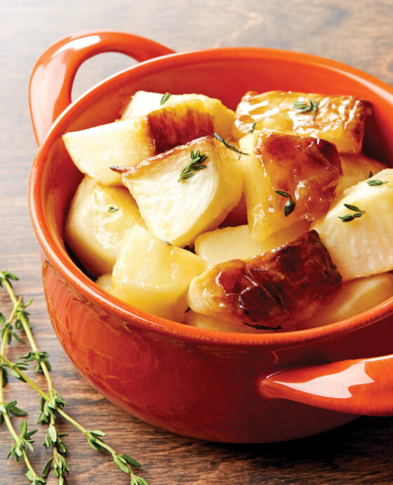 Arrange turnips in a single layer and roast for 20 to 30 minutes, turning over halfway through cooking time. Garnish with fresh thyme sprigs.