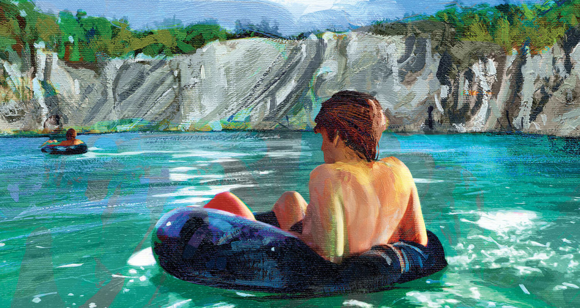 We weren’t the only ones there when I pulled the car around and parked on the opposite end of the quarry, where the narrow dirt road opened to a small beach at the water’s edge. Tim Yates, with his big mane of long, curly brown hair, was leaning against the fender of his 1968 VW Squareback mounted with a powerful sound system that blared blues-rock music across the crystalline surface. Others were stretched out on huge tractor-tire inner tubes, floating amid the massive rock walls and sipping from cans wrapped in Styrofoam can coolers. I won’t say what any of us were drinking because, at 16, it might have been illegal. But I will say that, in the late ’70s, Friday at the rock quarry was the best party in Randolph County.