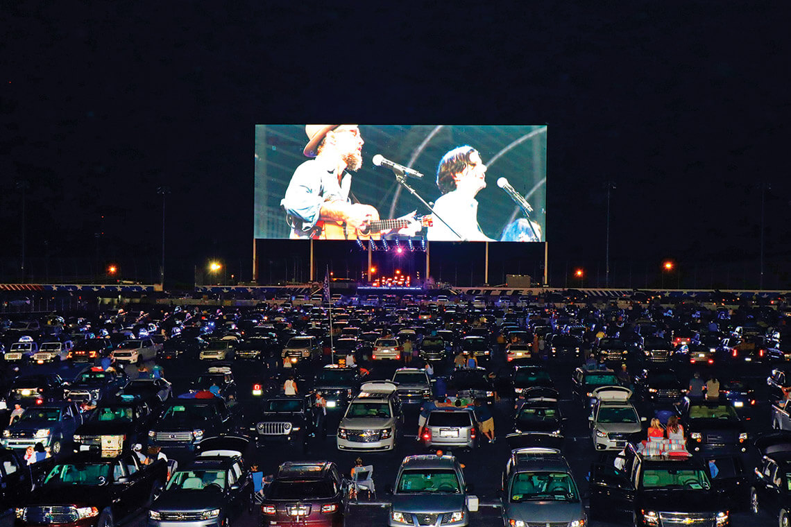 The Avett Brothers’ August 2020 “drive-in” concert at the Charlotte Motor Speedway was so successful that they did a second one that October. photograph by GARRY ELLER/@GEPIMAGES