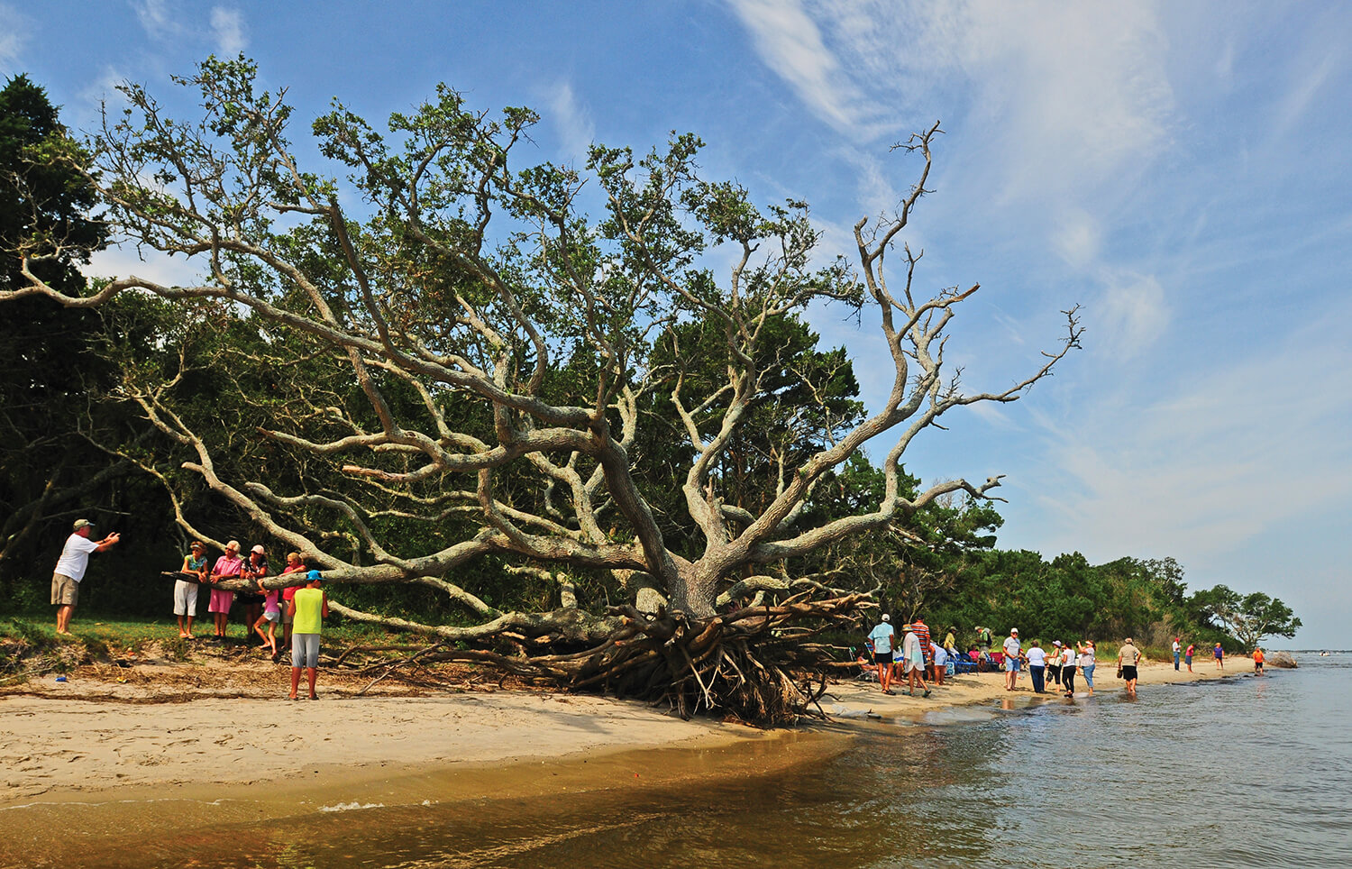 Deep in the maritime forests of Shackleford Banks lies a little-known, unmarked burying ground of the old Ca’e Bankers, the last remaining of the Cape Lookout cemeteries most likely, all the others having washed into the Atlantic. I visited there once with David Yeomans, born in 1921, one of the last of the old natives of the old Cape Village, and who died in 2006. Yeomans and I squirreled under pine trees and gnarly oaks hung with Spanish moss to a glade of live oaks where the ground dipped underfoot, indentations in the forest floor the size of a man — and a child. Yeomans scraped away a scrim of wind-blown sand and live oak leaves and pine needles, and knelt close to the marker stone of his half-brother’s wife, who died during childbirth on May 2, 1918. “You have left us, darling Carrie,” Yeomans read aloud, “the road looks long and dark …” Few people know of the old burying ground of Wade’s Shore. But it’s a sacred place, for sure, sacred to those who can trace their family lines back to those depressions in the sand, and sacred to those who stand there in the dappled sun and see how a little piece of ground ties it all together — what was, what is, what is to come. Now Yeomans, darling Yeomans, has left us, and gone back to his sacred place.