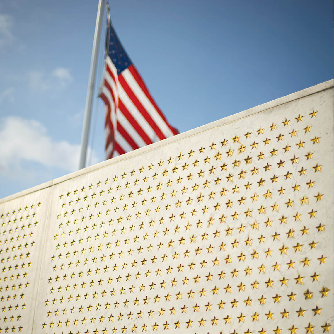 There are no names on the Montford Point Marine Memorial, only gold stars that represent the Black Marines who served during World War II. The absence of names symbolizes the fact that there is not a complete roster of Montford Point Marines. photograph by Andrew Craft