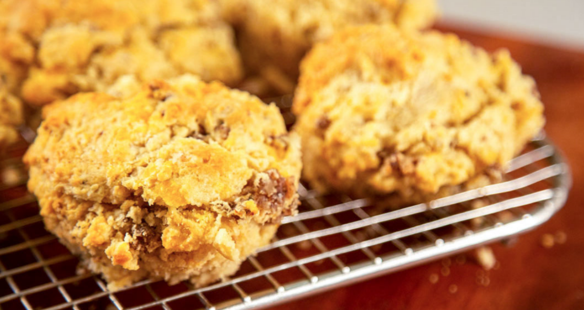 Tip: Generously filling each well with dough creates big, beautiful biscuits. In order to easily remove them from the pan, allow them to cool slightly in the pan, and then run a knife around the edge of each well before pulling them out.