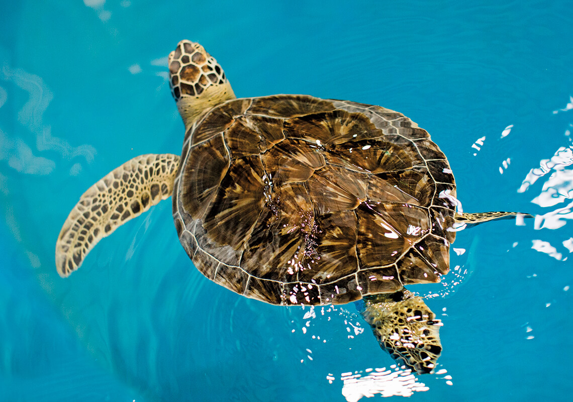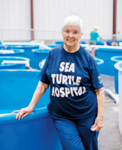 I am face to face with a sea-wizened mask, a 280-pound loggerhead sea turtle making burbling sounds in his tank. They call him Big Guy. His plum-size eyes, so gentle and steady, contain shadows of the ancient. If I could stare longer, I might even say they were mystical — but he is gone too fast, submerged. A year ago, Big Guy was cold-stunned in the waters off Cape Lookout, his belly full of garbage that he’d swallowed at sea. He was nursed back to health here in Surf City, at the Karen Beasley Sea Turtle Rescue and Rehabilitation Center. The entirely volunteer-run operation is led by one tireless visionary: Jean Beasley. With intense brown eyes and a constant smile, Jean moves with the calm practicality that comes from a life spent nurturing the injured.