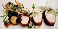 The final stop of the day, and of this mouthwatering, shore-following driving tour, is at The Left Bank restaurant in Duck, part of The Sanderling Resort. It’s a smooth finish. The elegant, curved room of windows facing the Currituck Sound is furnished in colors of Cognac and cream, and delicate bird sculptures are displayed on glass shelves. The food can look like a sculpture, too. One of the dishes on the tasting menu concocted that night by Chef de Cuisine Travis Lee Robinson consists of a single Rappahannock oyster in a gleaming, porcelain white shell, topped with white lychee sorbet, hackleback caviar, and a tiny sprig of Thai basil. It’s gorgeous and delicious. With no wall between the kitchen and the dining room, we watch the food being prepared. As at so many of the places on this coastal drive, in North Carolina, it is a place for people who simply and genuinely love the ocean and the seafood that it brings.