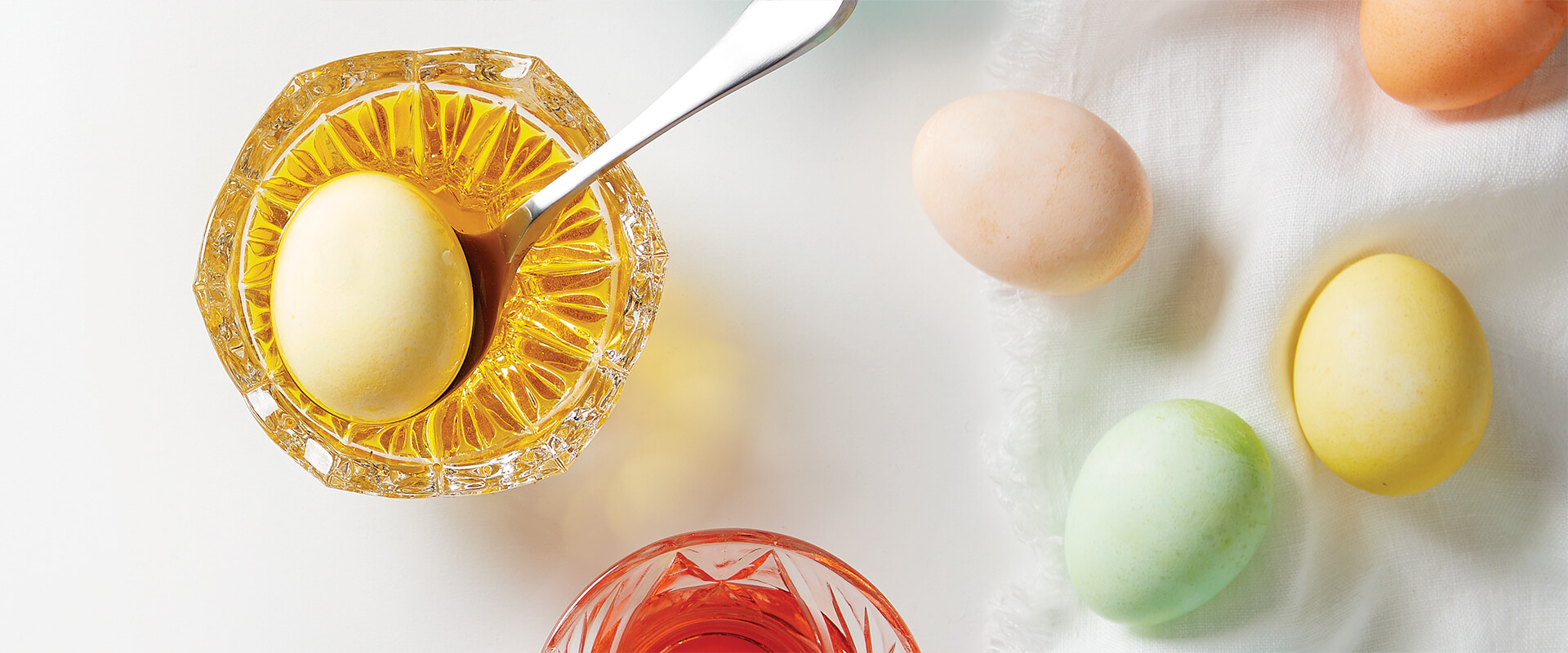 For a child, surely the best part of Easter is egg dyeing, a process in which, once your mother sets out the teacups reeking of vinegar and a carton of hard-boiled eggs, you have full control. There’s the wonder of watching the dye tablets dissolve — purple, pink, orange, yellow, green, blue — blossoming into glossy, Jell-O-looking sheens. You bend the wire dipper just so, lower each egg into a dye bath, and wait vigilantly, turning them frequently, otherwise one side will be lighter and one side darker: perfection spoiled. All the while, you’re scissoring out transfer images — a cross, a lily, a bunny — and deciding what you’ll write on the naked egg with the wax crayon thoughtfully supplied by PAAS. (And should you even bother with the cartoon collar that shrinks ’round the egg when it’s submerged? Sometimes they wrinkle unattractively.) Easter eggs are a morning’s anxious labor, for sure.