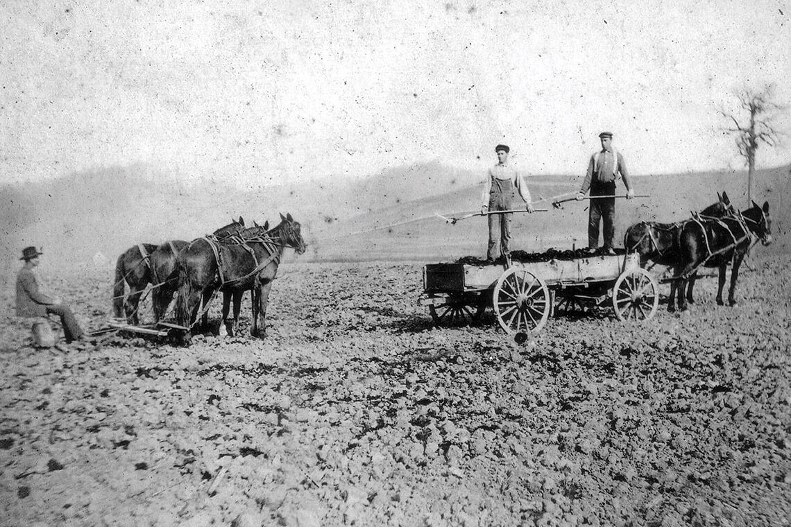 In the 1930s, brothers (from left) Joe, R.G., and Jim worked together on the family farm …<br><span class="photographer">Photography courtesy of Shipley Farms Beef</span>
