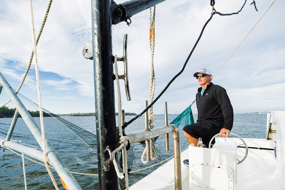 Capt. Tommie Jarman shares his knowledge of shrimping and his passion for working on the water through his company, Reel Livin’ Fishing Charters. photograph by Matt Ray Photography