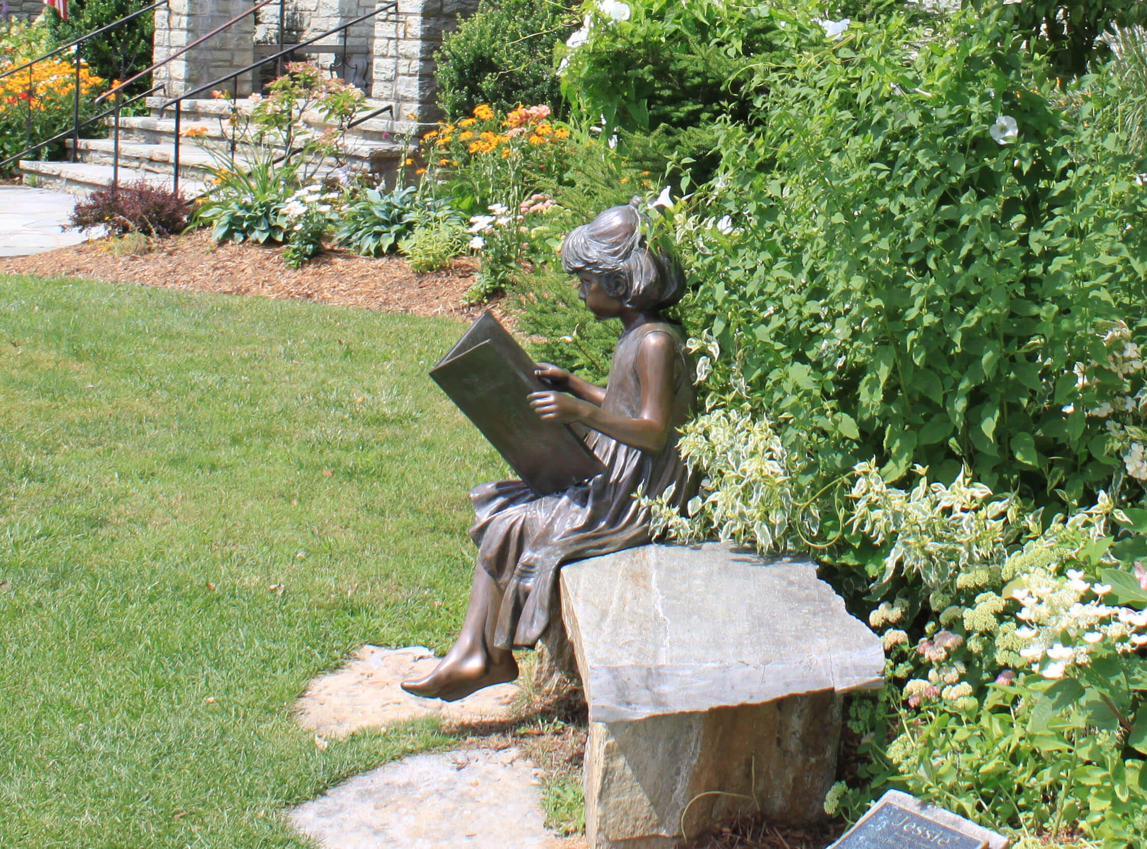 Sculptures, like Jessie by Cantey T. Kelleher in front of the Blowing Rock Community Library, are nestled across downtown Blowing Rock. photograph by Amanda Lugenbell