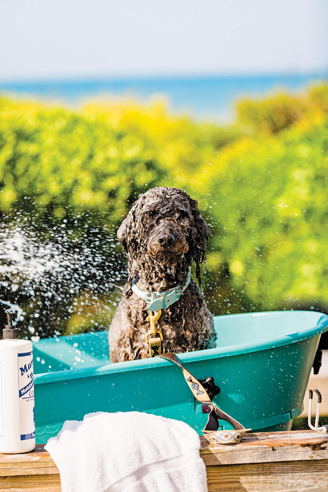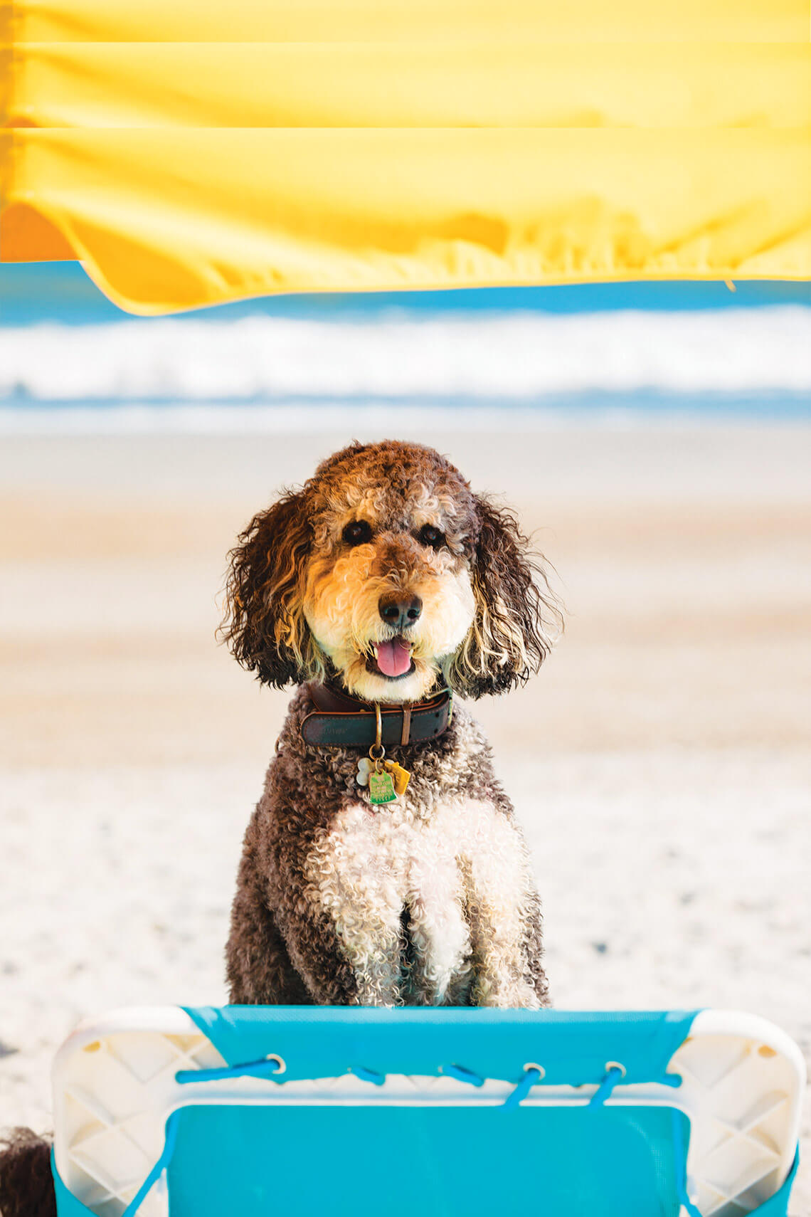 At Atlantis Lodge, four-legged guests like Seamus the Bernedoodle get their paws sandy. photograph by Baxter Miller & Ryan Stancil