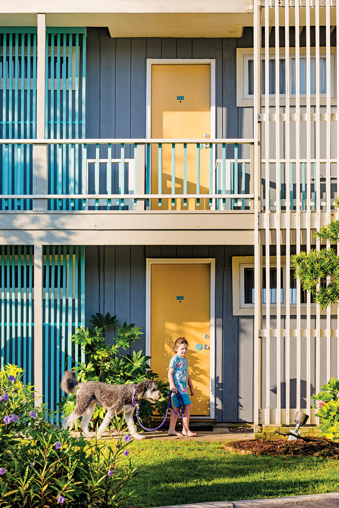 “Her idea was to have a small motel with apartments so that people could stay for the month if they wanted to,” Hall says. “One of her first customers had a dog or a cat, and she said, ‘Sure.’”