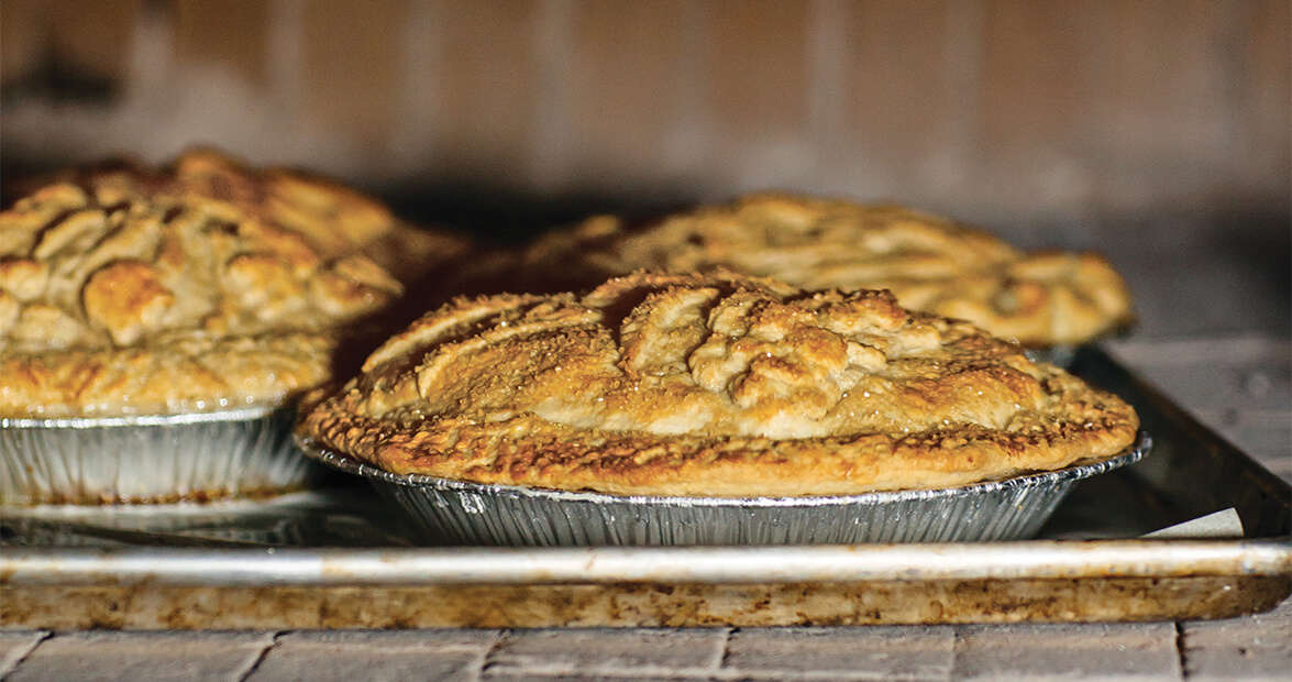 To get a sense of a Tara Jensen apple pie, imagine tender crescents of sweet apples gently perfumed with spices, encased in an intricate pastry shell, with a hint of wood smoke, and the collective wisdom of all the pies baked in that oven for more than two decades.