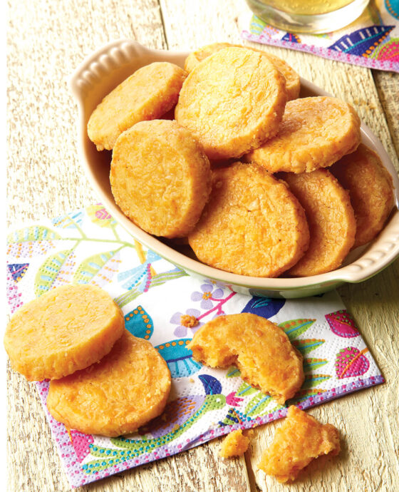 In a large bowl or stand mixer, beat the butter and hot sauce until smooth and creamy. On low speed, gradually add flour mixture, scraping down the sides. Add cheese and continue mixing until all ingredients are well incorporated. Remove dough from mixing bowl, form into a ball, and place on clean countertop.