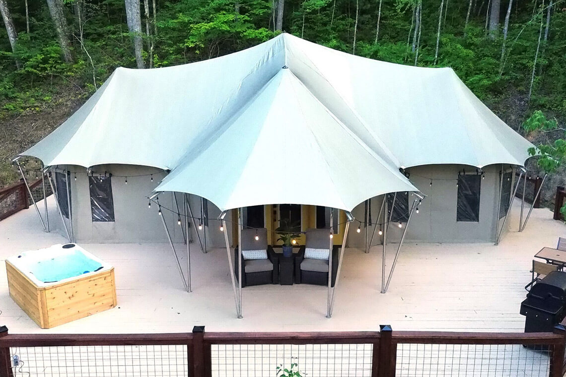 Glamp in a luxury tent at Elk Hollow Resort. Photography courtesy of Swain County TDA