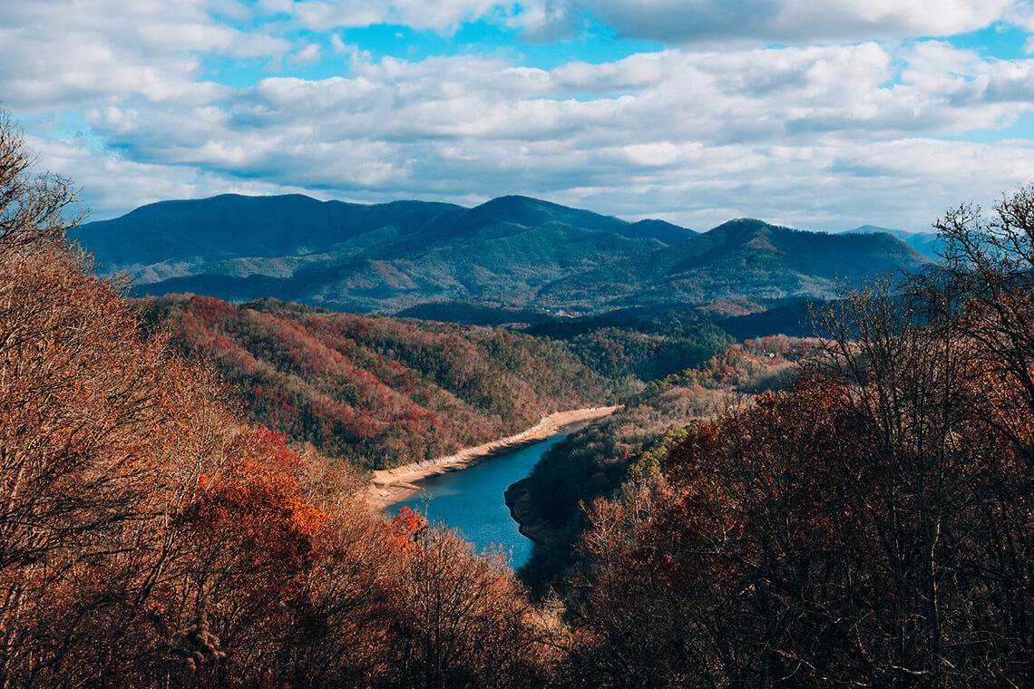 As the leaves begin to change, hit the Appalachian Trail and take in views of Fontana Lake as you hike to Shuckstack Tower. photograph by Concord Creative