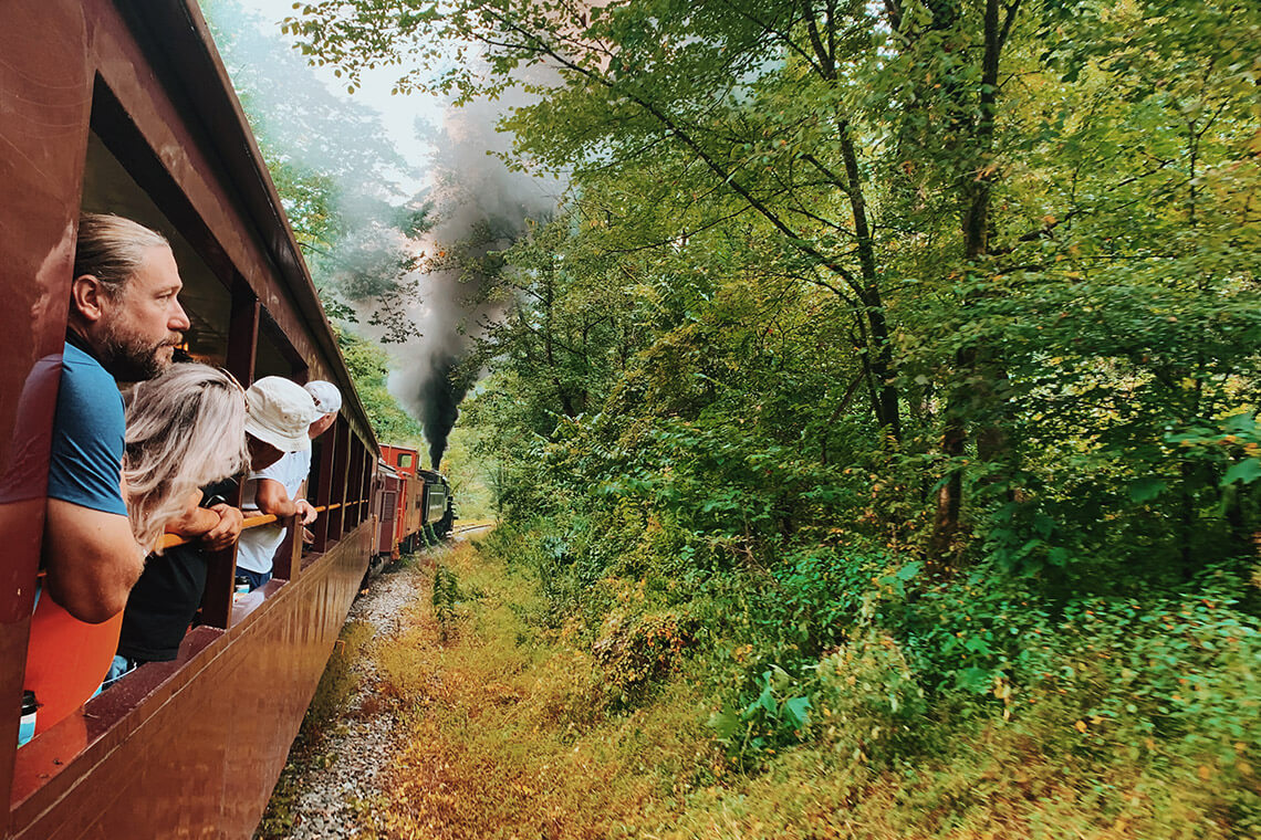 The Great Smoky Mountain Railroad follows a scenic route through the Smoky Mountains National Park and Nantahala National Forest that’s otherwise inaccessible by car.<br><span class="photographer">Photography courtesy of Swain County TDA</span>