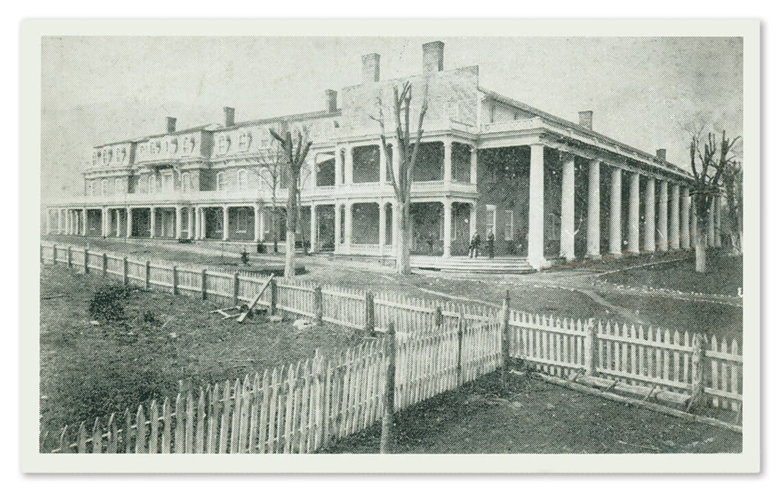 In the 1830s, James Washington Patton constructed a grand hotel, designing the porch with 13 columns meant to represent the original colonies. Photography courtesy of BUNCOMBE COUNTY SPECIAL COLLECTIONS, PACK MEMORIAL PUBLIC LIBRARY, ASHEVILLE, NORTH CAROLINA