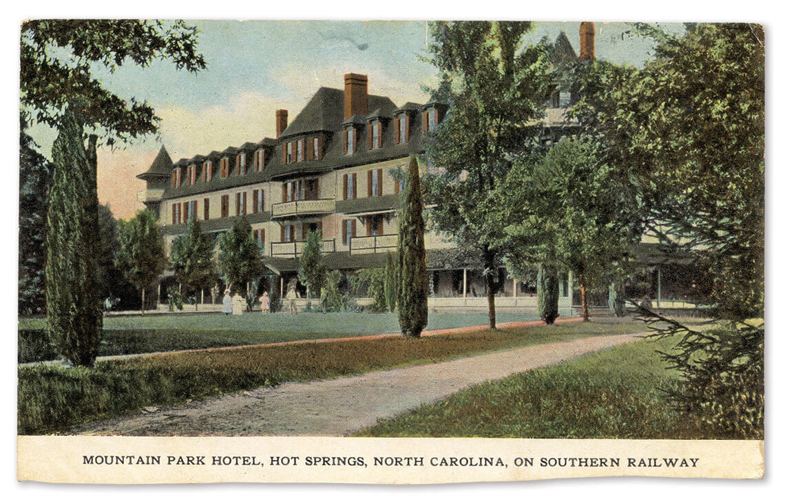 After the Warm Springs Hotel burned in 1884, it was replaced with an even more extravagant resort. The 200-room Mountain Park Hotel boasted one of the first golf courses in North Carolina. Guests reclined in nine-foot-long marble pools and had access to bowling alleys, tennis courts, and riding stables. A typical therapeutic stay lasted 21 days. The famous and the wealthy flocked to Mountain Park — O. Henry spent his 1907 honeymoon there. When it burned in 1920, it was replaced with yet another spa resort, the Hot Springs Inn.