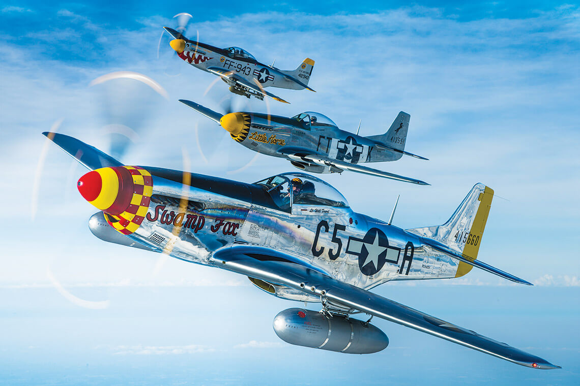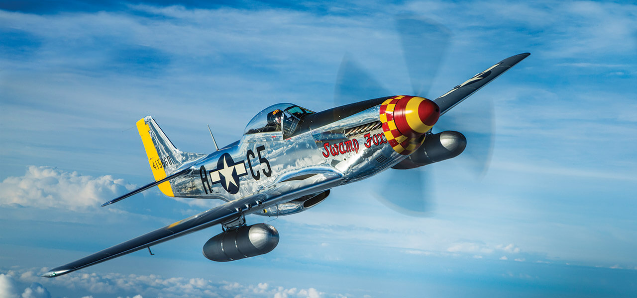 When asked about the best part of owning Swamp Fox, RT could go on and on about the thrill of pushing the throttle forward and unleashing the plane’s 1,495-horsepower Packard Merlin engine. Or the sublime feel of the airplane’s controls as he pirouettes through the sky. But when pressed, he simply says: “The people. Swamp Fox has allowed us to meet the most amazing people.”