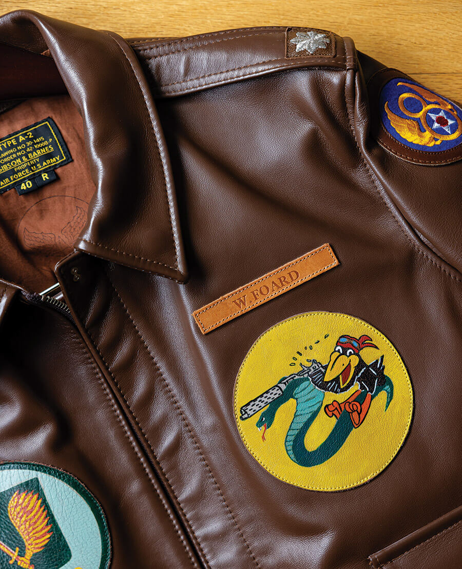 At a ceremony to unveil the new Swamp Fox in 2012, the Dicksons presented Foard with a replica of his old flight jacket, complete with a 364th Fighter Squadron patch. The original had worn out years before, so the Dicksons had three new ones made — one for each of them. photograph by Tim Robison