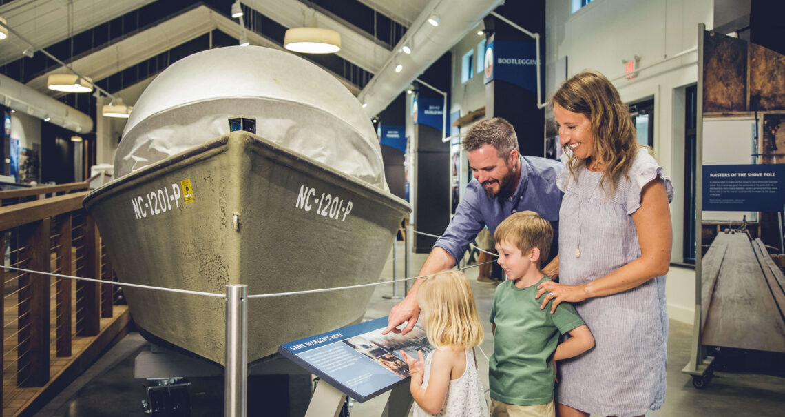 The Maritime Museum also shares the stories of fishermen like the Twifords, four generations of one family that have practiced the age-old method of pound net fishing — submerging logs to capture fish in nets — on the Outer Banks.