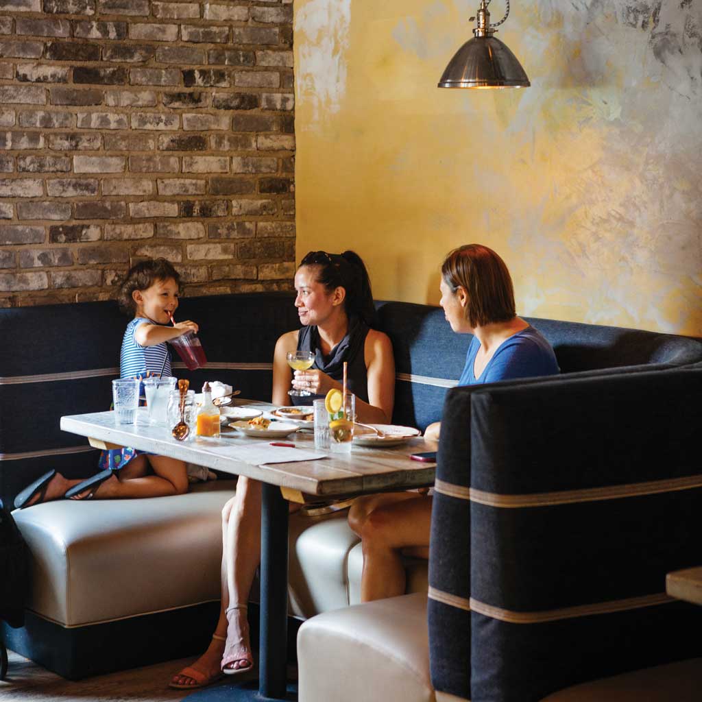 At Haberdish, there are North Carolina touches woven into the decor. For example, the denim in the booths came from the now-closed Cone Mills in Greensboro. photograph by Tim Robison