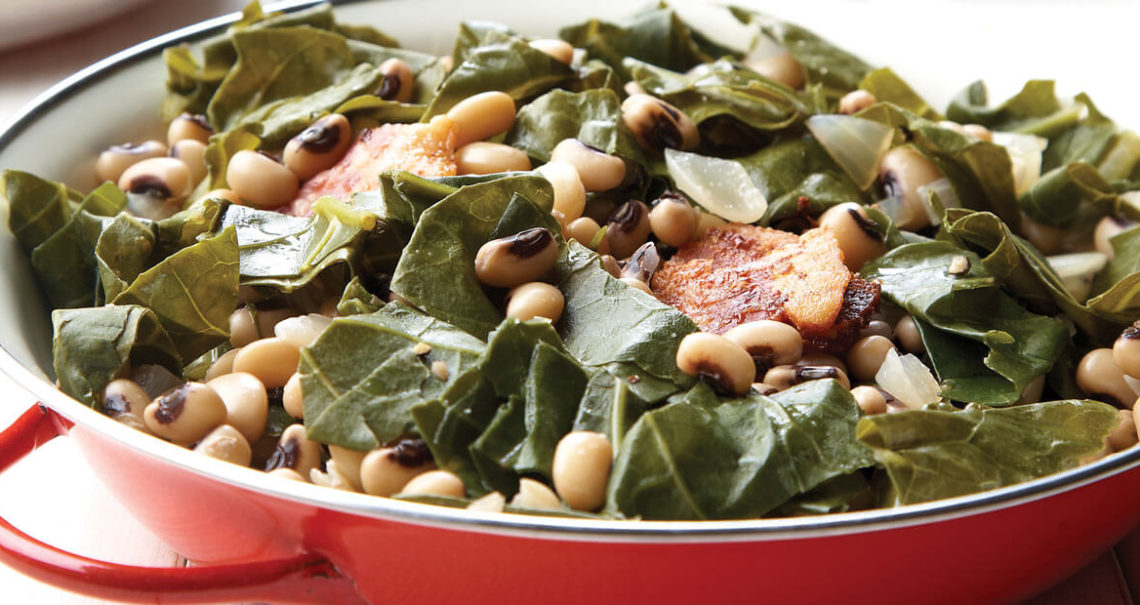 When the peas are cooked, add the collards to the pot and cover. Add 1 teaspoon of salt and some freshly ground pepper, then stir. Taste the liquid and peas and add salt as needed. Cover the pan and cook for about 10 to 15 minutes. When the collards are tender, turn off the heat. Remove the bay leaf. Serve over rice or with cornbread.