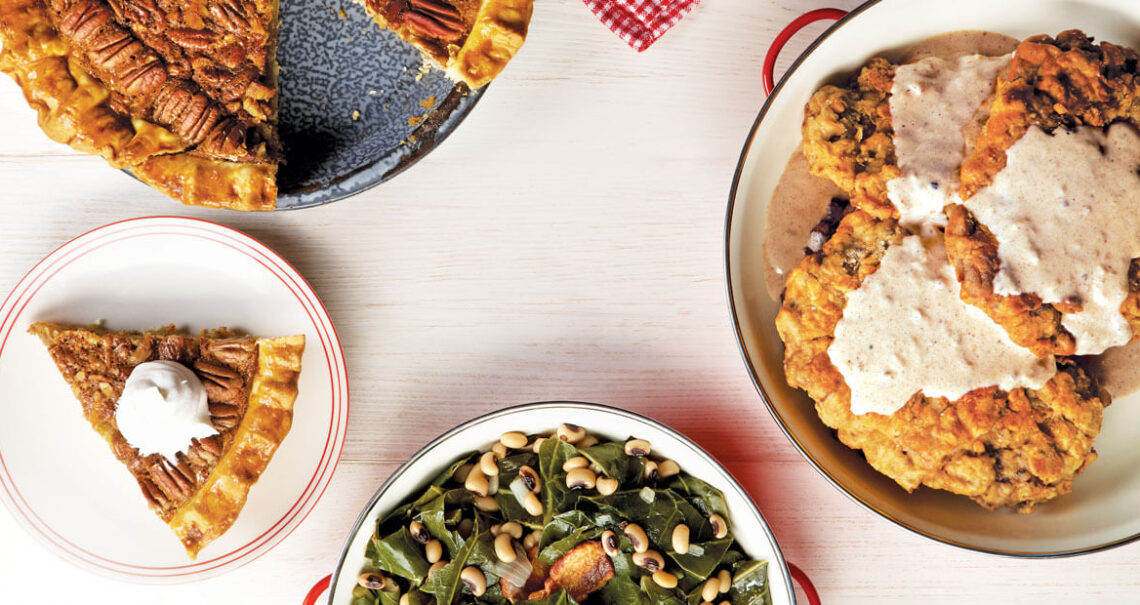 Dredge the cube steaks in the flour mixture, shaking off excess, then dredge in the buttermilk-egg mixture, letting excess drip off, and then a second time in the flour mixture, shaking off excess. Place breaded cube steaks on a sheet pan or metal rack and press any remaining flour mixture into the cube steaks, making sure that the entire steak is completely coated. Let sit for 10 minutes.