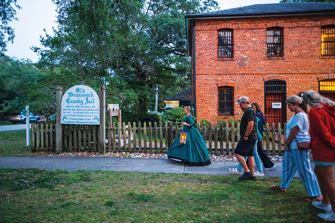 Some of the stops on Old South Tour Company’s walking ghost tour include the Old Brunswick County Jail …<br><span class="photographer">photograph by MALLORY CASH</span>