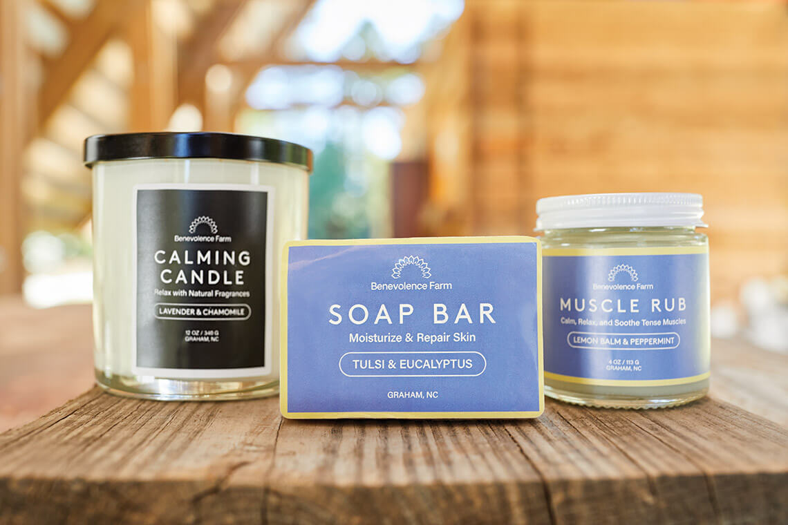 In the cool, fragrant air of the farm’s basement, the women strain into grape-seed oil the flowers and herbs that they’ve coaxed into bloom and blossom. Calendula, white sage, lemon balm, and catnip combine in a soothing, floral aroma over the long table where they make soaps and candles, salves and muscle rubs to sell. What started as an optimistic one-off venture at the 2018 Saxapahaw holiday market quickly grew into a $30,000 enterprise. This year, Powers thinks that Benevolence Farm body products could bring in $50,000. It’s still not enough to cover the wages that the farm pays to the women for their labor. (Each resident works at least eight and up to 29 hours per week.) But it’s getting closer.
