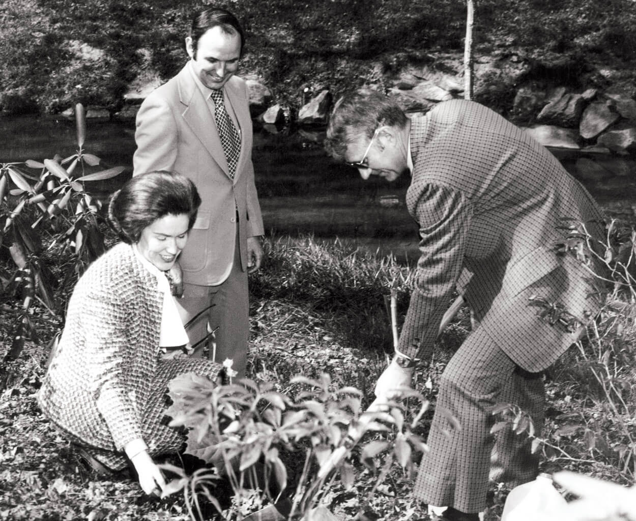 After orbiting the moon on Apollo 14, a sycamore was planted during a ceremony at the Asheville Botanical Gardens, attended by NC First Lady Pat Holshouser. photograph by the botanical gardens at asheville