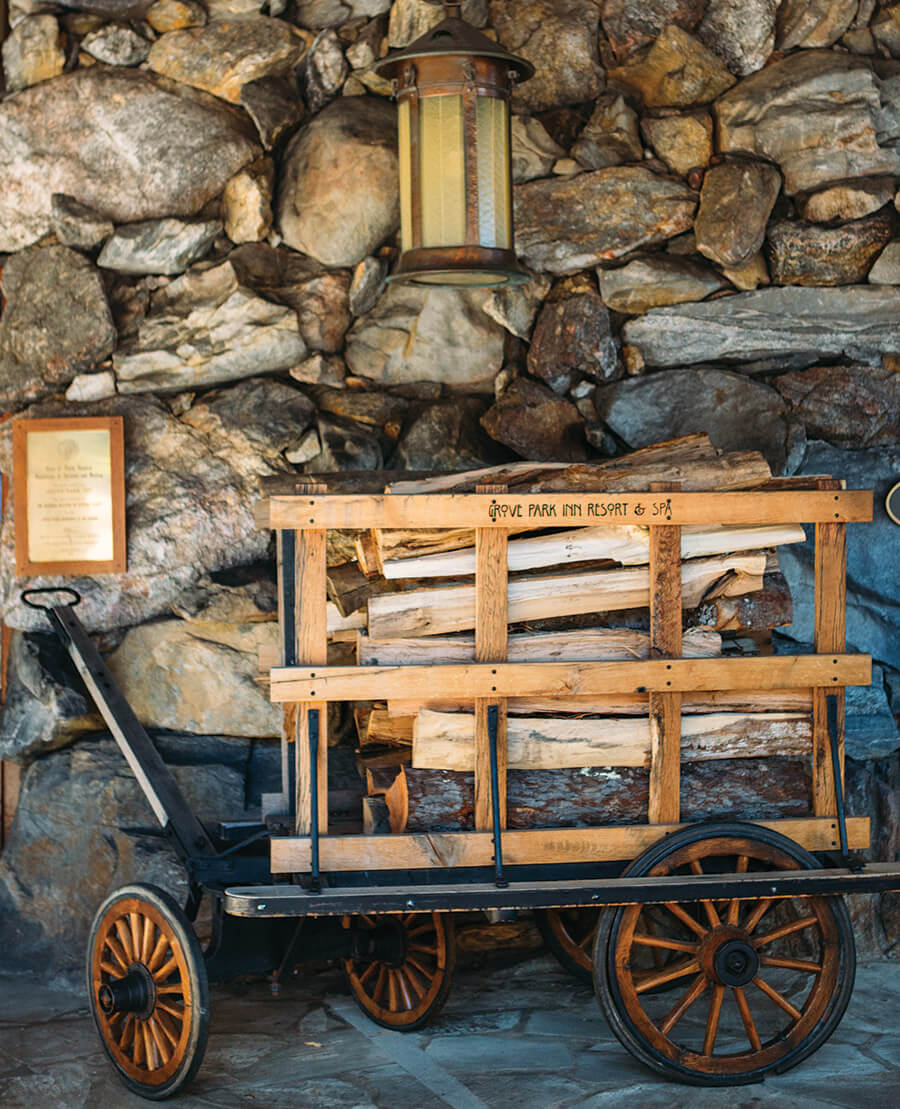 Guests are asked not to remove the logs from carts next to the fireplaces, but that doesn’t stop them. photograph by Tim Robison