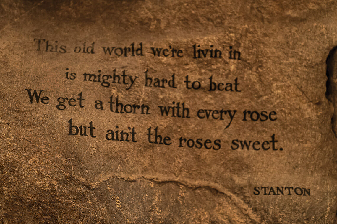 Inspirational quotes Fred Seely initially had painted onto the boulders to motivate the 400 construction workers who built the Grove Park Inn.<br><span class="photographer">photograph by Charles Harris</span>
