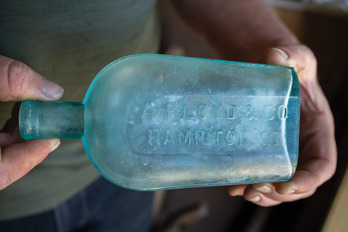 Gregory Scott Given holds history in his hands — and, likely, about $5,000. That’s the value he estimates for a pristine 1890s whiskey bottle that he dug up not too long ago in the Martin County town of Hamilton. The glazed, green-tinted flask is so enchanting that you half expect a genie to materialize from its unstoppered opening, ready to grant three wishes.