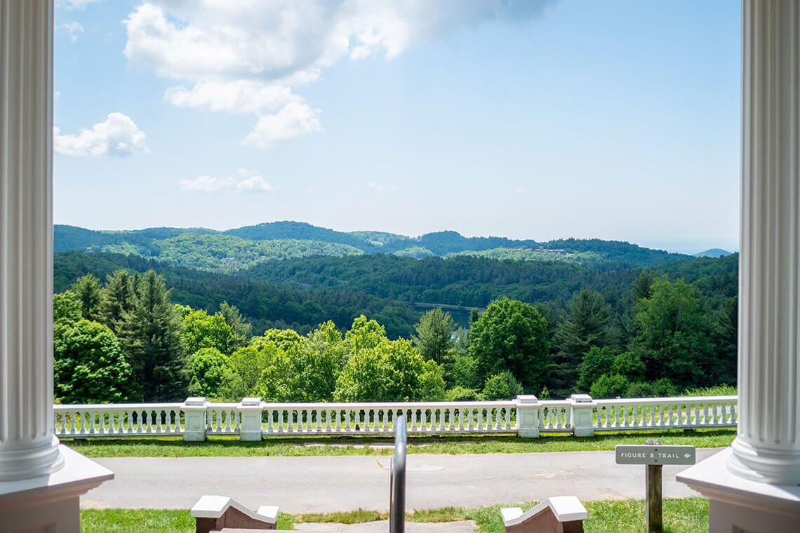 Take in the mountain view from the porch at Moses Cone Manor. Photography courtesy of Explore Boone