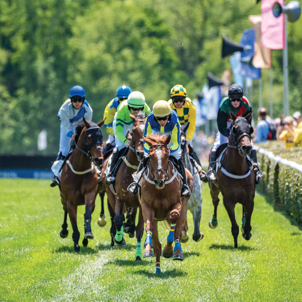 When Shay and Meena Patel hear the announcer call the start of the second race — “The flag is raised … and they’re off!” — they rush to the fence. The horses appear to glide down the track as they round the first turn. They race neck-and-neck down the stretch, then sail into the air in front of the Patels’ rented tent, over one of six hurdles on the 2¼-mile course. Like “The Wave” traveling through the crowd at an indoor basketball game, cheers follow the horses as they sweep along the course and out of sight.