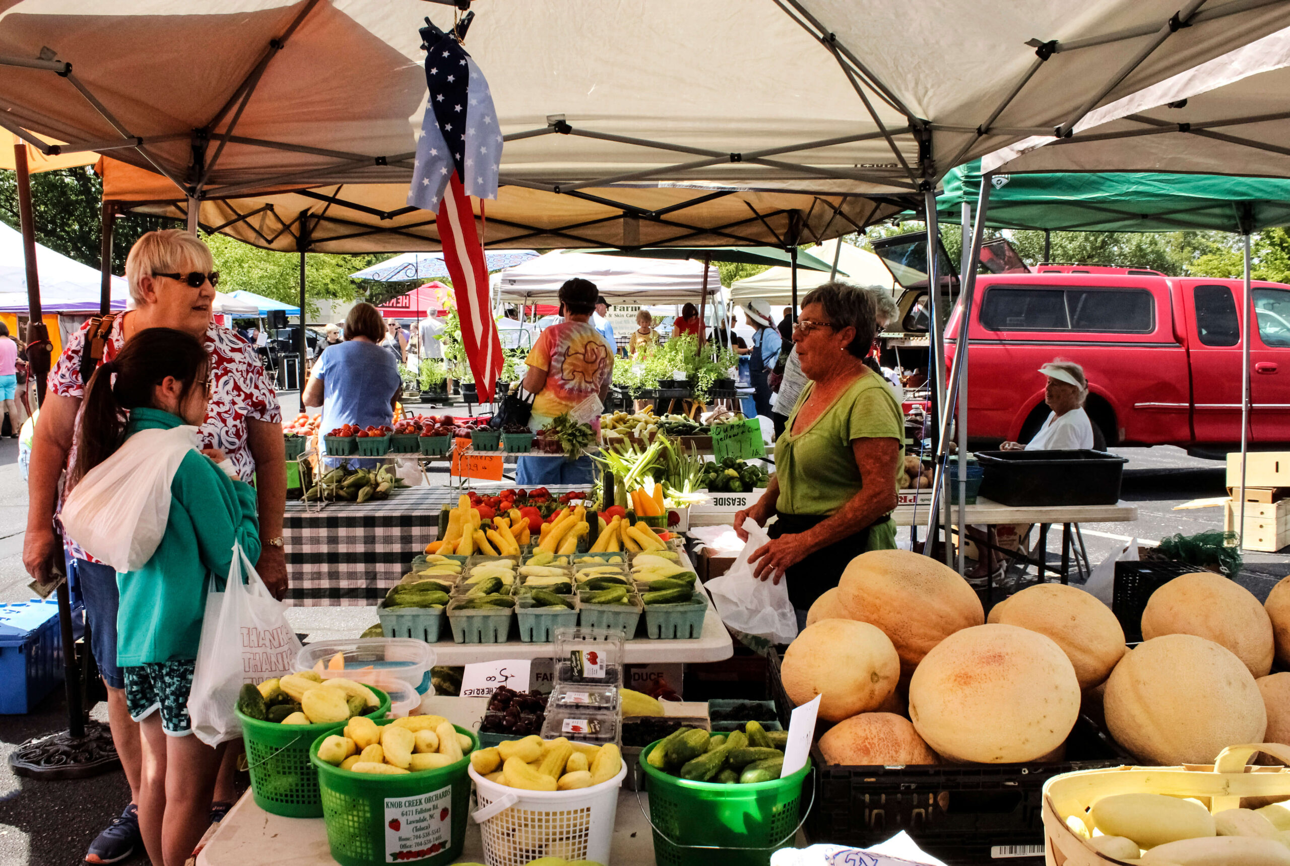 On Wednesday and Saturday mornings during regular season, the Hickory Farmers Market finds shelter under The Sails on the Square. photograph by Visit Hickory
