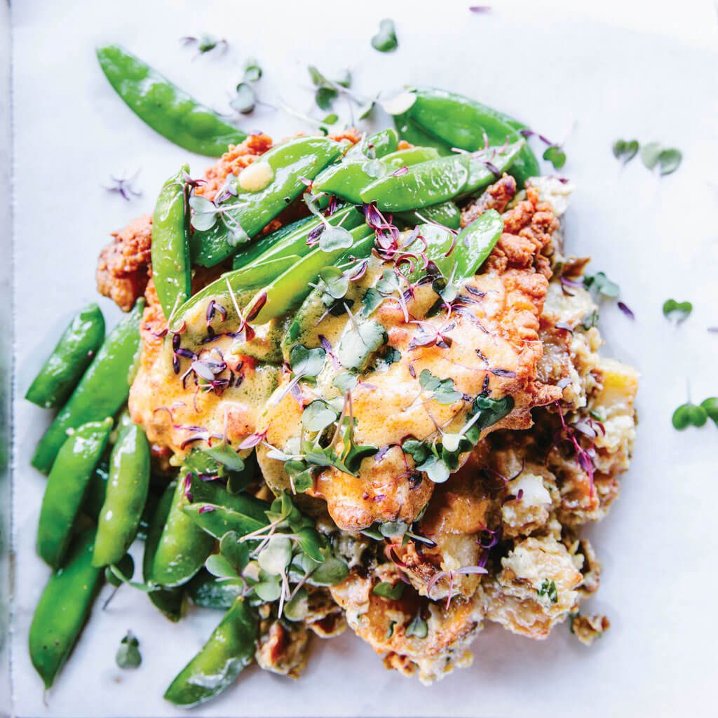 Dishes like fried chicken with snow peas and duck-fat potato salad have earned Stone Table a loyal following. photograph by Laura Sumrak