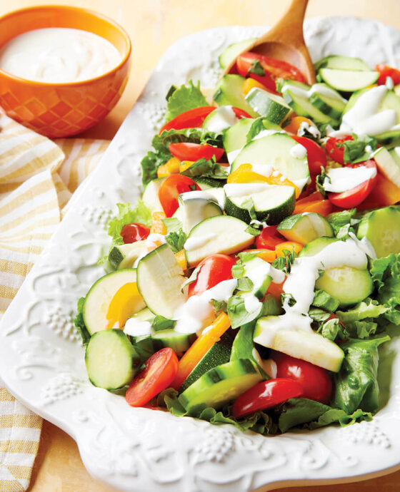 For the dressing: Place all ingredients in a food processor or blender. Pulse until mixture is smooth. Refrigerate until ready to serve.