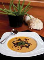 Chef Andy Hopper grew up on Southern fare, so he knows that sweet potatoes and country ham go together. But Hopper thrives on pushing culinary boundaries. When a cooking competition challenged him to create a dish using Johnston County country ham, he concocted a pork-filled sweet potato soup incorporating coconut milk, ginger syrup, honey, and mascarpone cheese. That soup helped Hopper win Fire On the Dock, a regional cook-off held this summer in Wrightsville Beach, as well as scores of new fans for his Morehead City restaurant, Chefs 105. The soup was so popular that Hopper included it on his fall menu. It’s a game changer for anyone who thinks sweet potatoes belong only in casseroles.