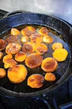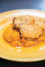 Customers find simple satisfaction in Ye Olde Country Kitchen’s panfried sweet potato slices served during the fall. Owner Bryan Wilson fries thick disks of sweet potato in a bit of canola oil and coats them in a caramelized glaze of brown sugar, sugar, and nutmeg. The dish offers the familiar taste of a traditional casserole delivered with a more al dente texture and a freshness that celebrates the autumn yield. “We try to do that in peak season,” he says. Wilson gets his sweet potatoes from a farmer near Dunn and his technique from his grandmother. He and his wife, Melodee, run Ye Olde Country Kitchen, a family operation that opened in 1969. His parents, James and Louise Wilson, and his grandparents, Robert and Ruby Wilson, ran the place before them. All of the dishes come from family recipes.