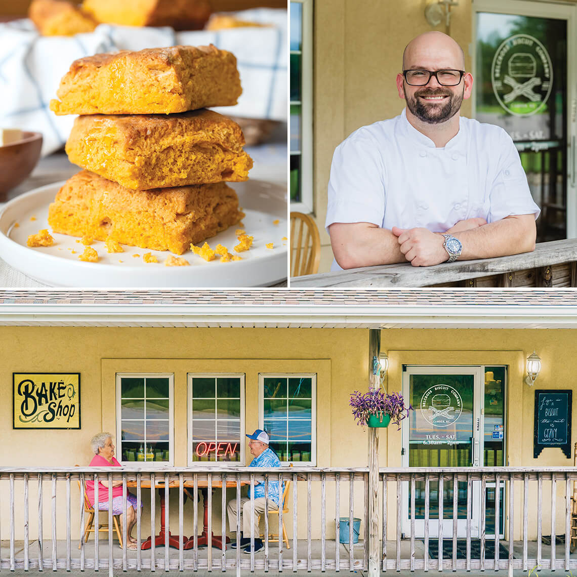 Jeff Burns grew up in Texas watching his grandmother make biscuits in the mornings. He’d never had a sweet potato biscuit until he moved to North Carolina around age 15, and even then, the slightly sweet, flaky treats had to grow on him. “I enjoy them thoroughly now,” he says. Today, Burns — owner of Belcross Biscuit Company since 2022 — starts off by roasting fresh sweet potatoes and finishes by baking the biscuits until they’re golden brown on the bottom. While they’re baking, he says, “you smell caramelized butter and sweet potato, and you know you’re in the right place.”