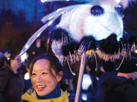 Colorful lights shine for the community to enjoy during the longest night of the year at this gathering.