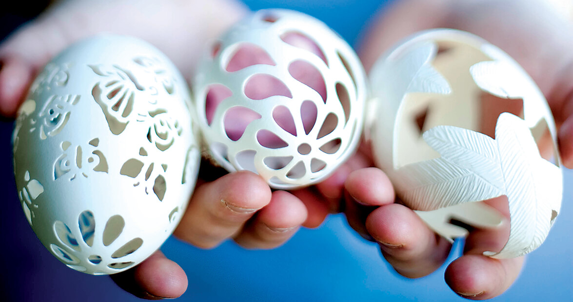 Beautiful etchings emerge as artist Rebekah Joy Brown transforms eggshells into art in her Franklin studio.