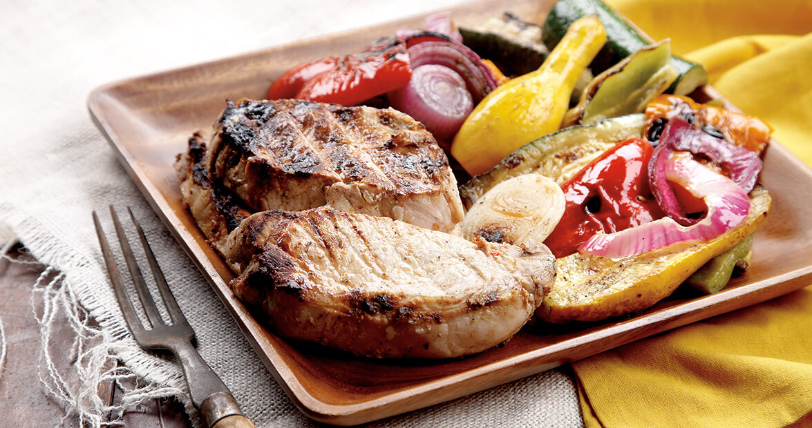 Zesty Pork Loin Chops and Grilled Marinated Vegetables