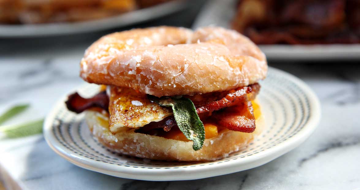 Food “Hot Light” Breakfast Sandwich For a sweet and savory start to your day, try this bacon, egg, and cheese sandwich with a Krispy Kreme twist. by Elena Brent Rosemond-Hoerr