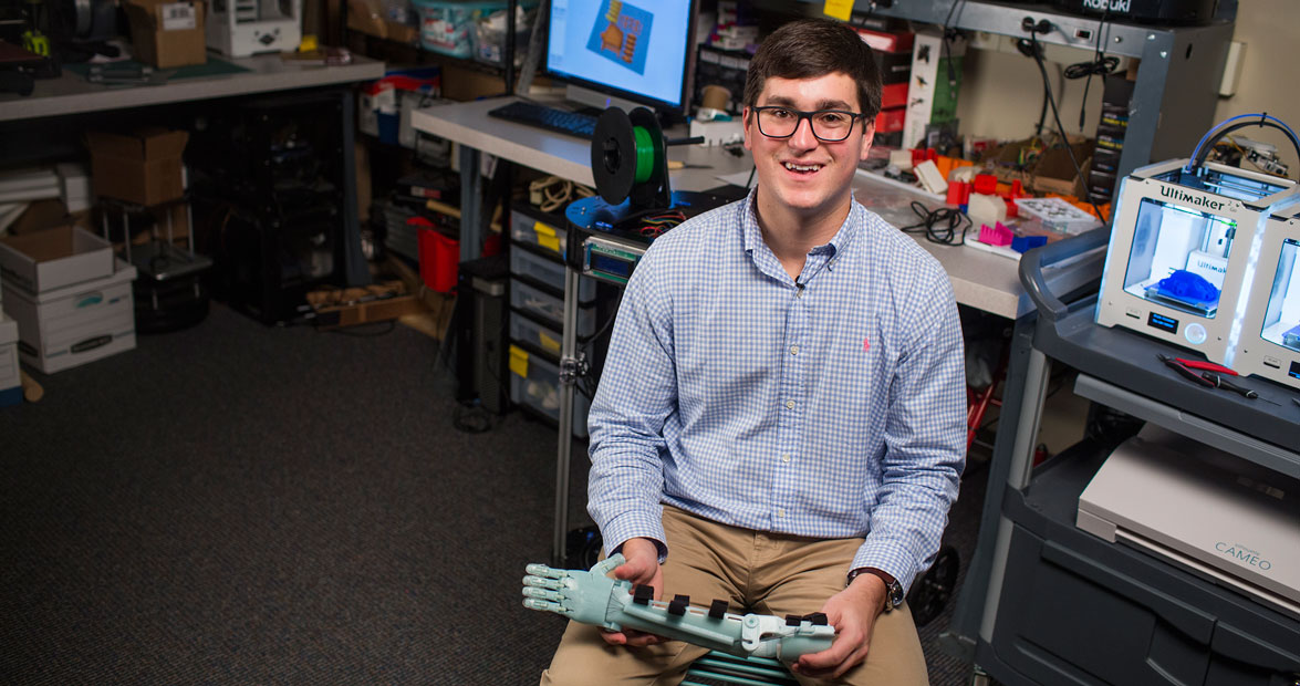 Graduate student Jeff Powell is using 3-D printers and a network of volunteers to lend a hand to people with limb abnormalities.