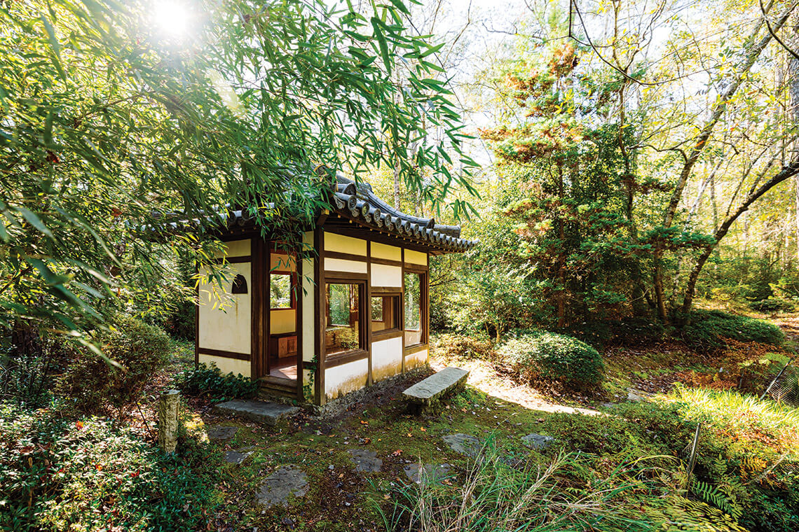 Beneath an emerald ceiling of loblollies, at the end of a one-lane road carpeted with copper pine needles, Mattie, a calico cat with golden eyes, hides under the branches of a Japanese maple. She steps out to greet gardeners Nancy Parra-Ash and Thomas Ash, who have come to tend to their trees.