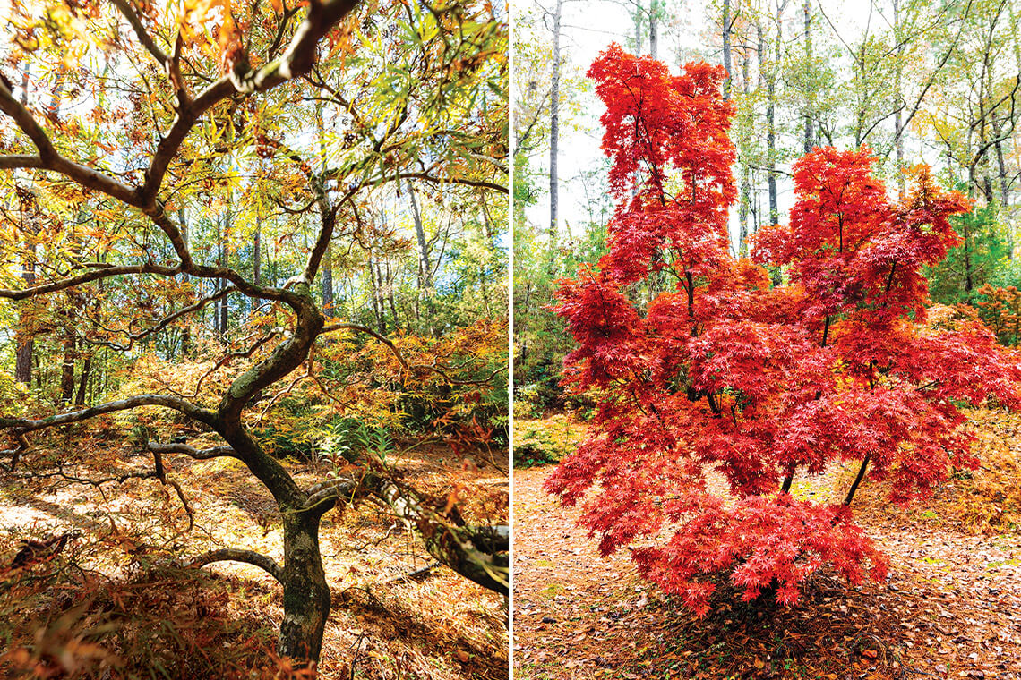 The Ashes’ trees have been purchased and transplanted across the state, from the Botanical Gardens at Asheville to the New Hanover County Arboretum, and in private gardens from Greensboro to Roanoke Island. About 50 sculpted, mature Japanese maples still grace the nursery, and in their semiretirement, the couple has decided to keep some of the trees as a small arboretum of their own. Each fall, when their leaves drop, the beauty of the bare, gray trunks and limbs — the result of the Ashes’ bonsai mastery — is revealed.