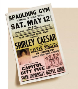 Over the years, Shaw’s archives have served other students who would become leaders. Gospel legend Shirley Caesar attended Shaw, as did Congressman Adam Clayton Powell Jr. Many alumni went on to establish or preside over other HBCUs. The founder of North Carolina Central University and the first presidents of Elizabeth City State and A&T universities all were Shaw graduates.