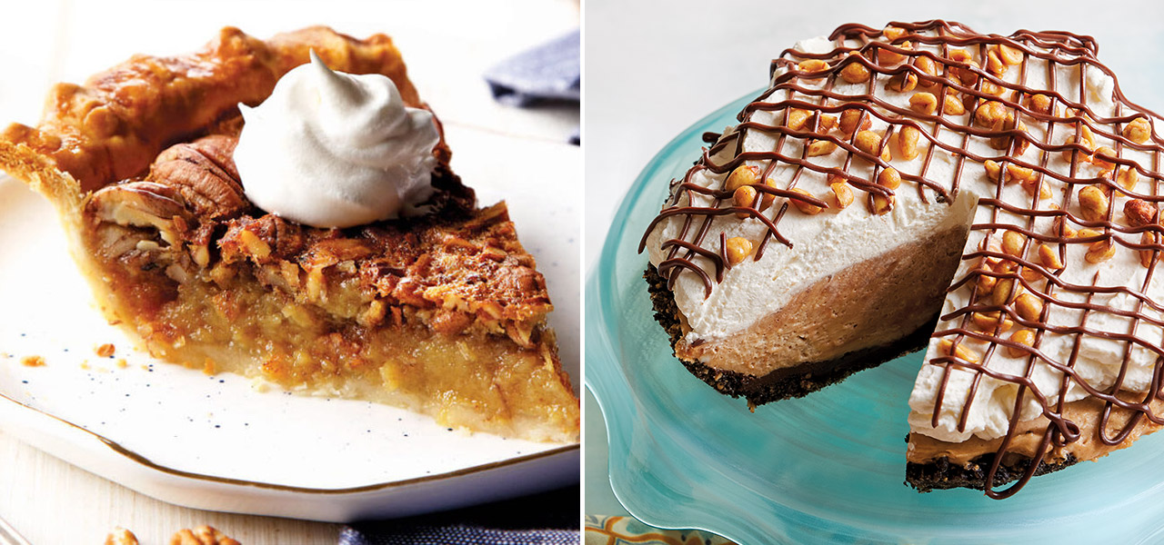 Give thanks for pie! Creamy chocolate walnut; sweet potato covered in a buttery, crunchy topping; classic, custardy pumpkin — these favorites are fit for a feast.